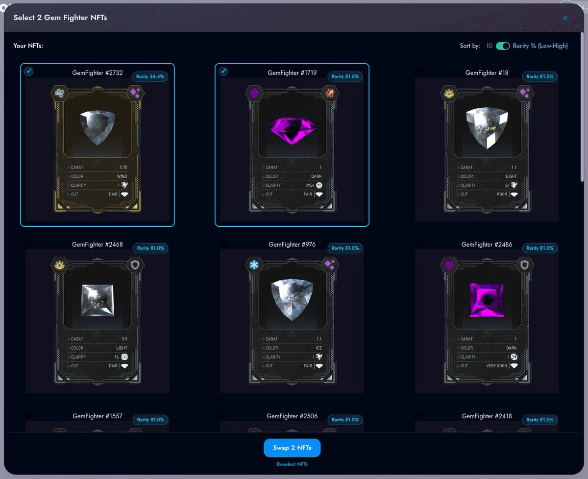 ๐ฎ Gem Fighter NFT Swap Gets Rarity Display