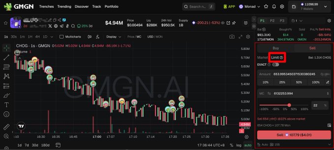 ⚡️ GMGN Update 1. Monad Limit Orders - Auto-execute buy/sell for TP/SL and auto-buy the dip 🧑🏻🍳 We keep cooking, try now: gmgn.ai/?chain=monad