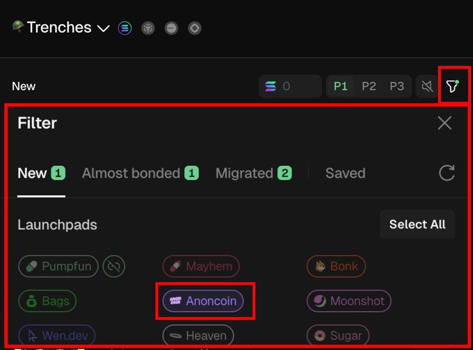 ⚡️ GMGN Update - Trenches Support @anoncoinit Launchpad - SOL chain added Anoncoin launchpad. Enjoy the fastest & smoothest token trading⚡️ 🔗 Try now: gmgn.ai/?chain=sol