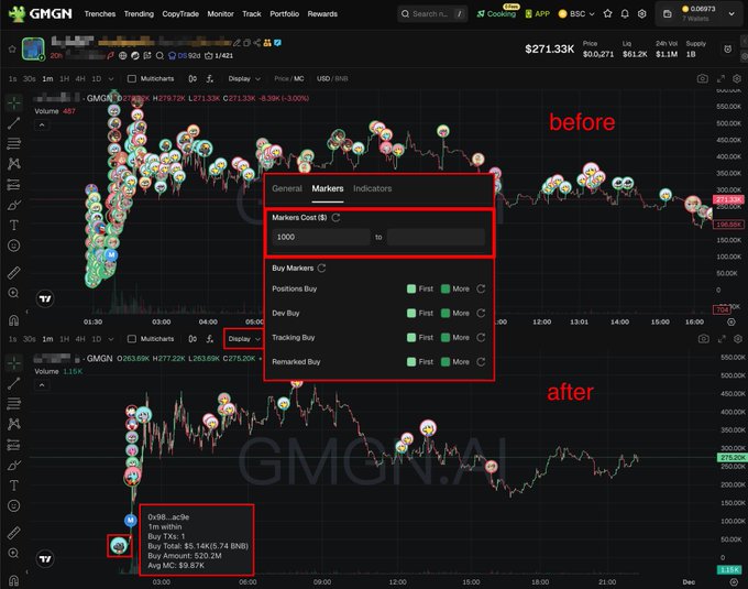 GMGN introduces candle marker amount filtering to help traders focus on legitimate smart money moves.