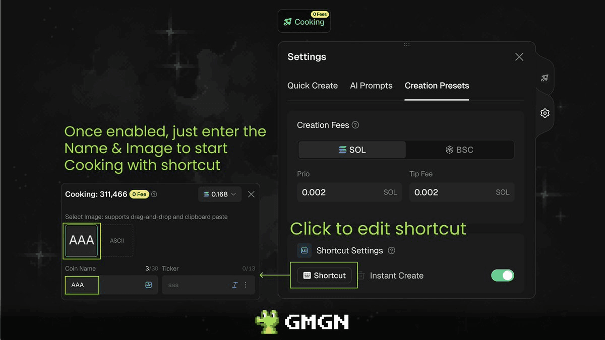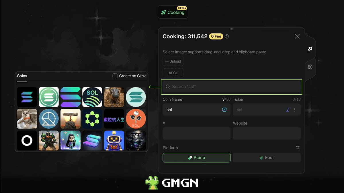 GMGN has rolled out two key updates to its token creation platform: **Quick Image Search for Historical Coins** - Users can now search for images from previously launched tokens with similar names - One-click creation from selected historical images - Streamlines the token design process **Millisecond-Level Pumpfun Launch** - Token launch flow significantly accelerated - Millisecond-level responsiveness for faster deployment - Builds on previous cross-chain launch capabilities These updates focus on speed and efficiency for token creators using GMGN's Cooking platform at [gmgn.ai](http://gmgn.ai).