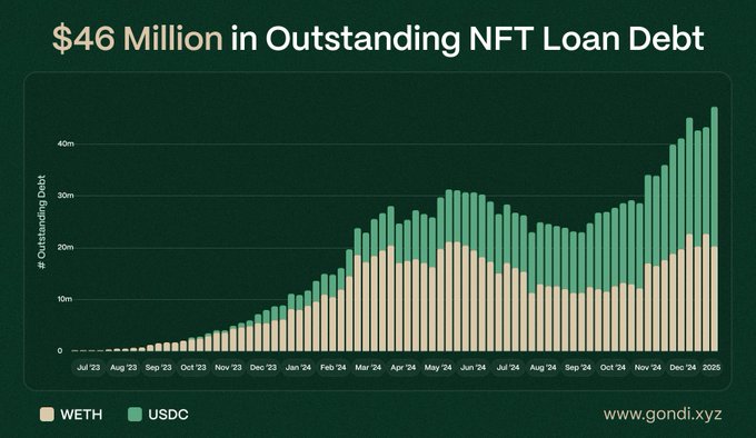 GONDI continues to reach All-Time Highs as we start the new year. Currently, there is approximately $46 million in outstanding NFT loan debt and nearly $100 million in TVL. Just getting started... Join our discord and visit the protocol to learn more. ✨