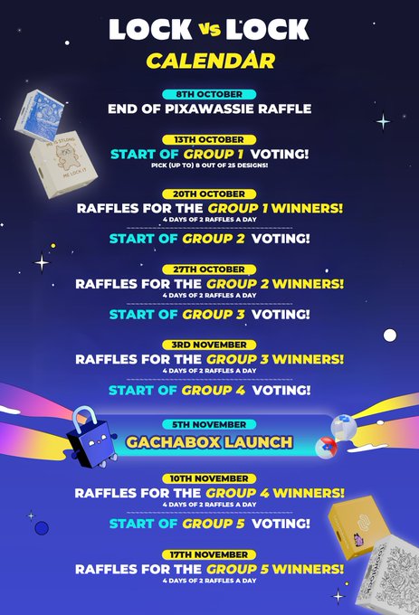 The group 3 lock results are in! We are removing the raffle stage of lock purchasing and instead letting you directly buy the designs from the getgo with your $LOCKS tokens. Links to the locks down below!