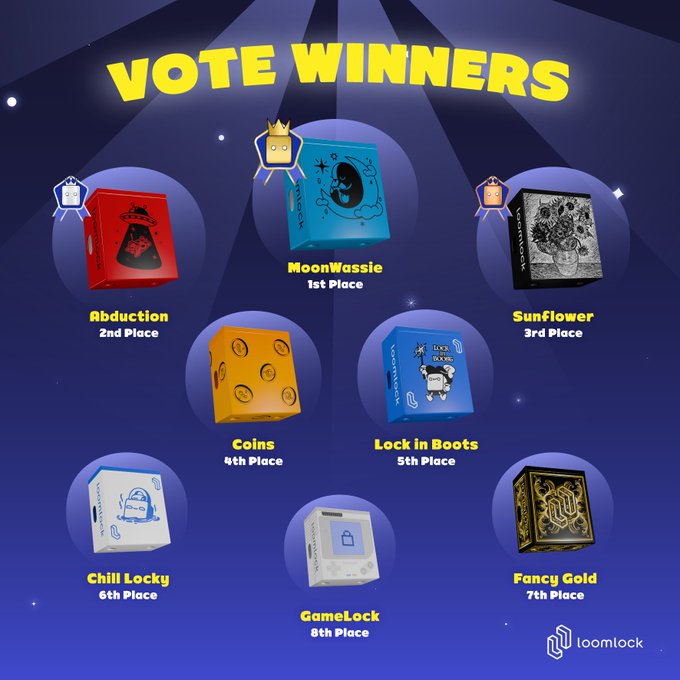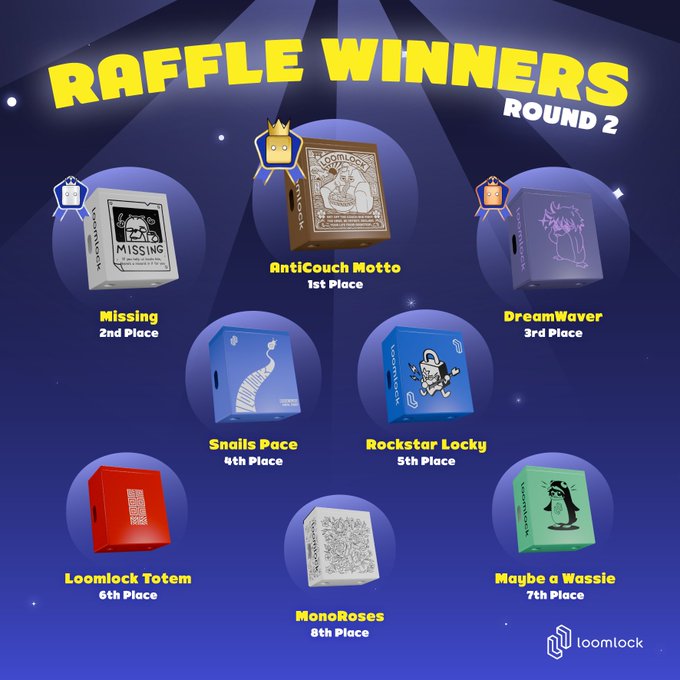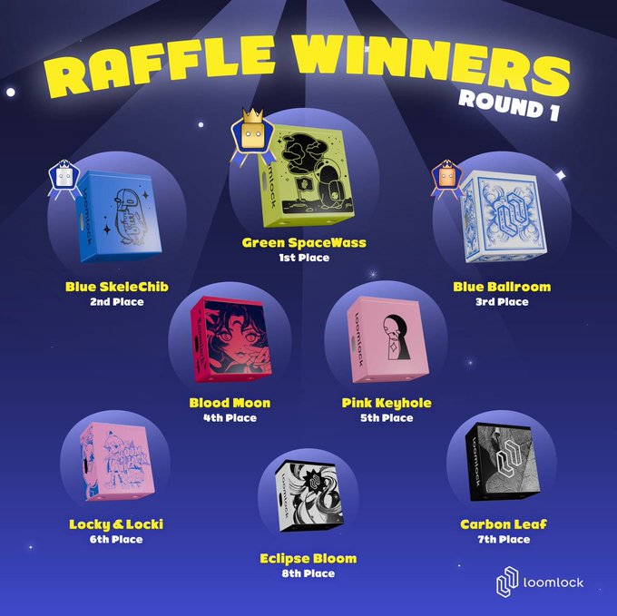**150 winners selected** from the Blueberry box raffle - Winners can check status at [loomlock.com/giveaways/blueberry-box-raffle](http://loomlock.com/giveaways/blueberry-box-raffle) - Exclusive giveaway for community vote participants - Winners eligible to claim **limited edition boxes** at redemption time **What's next:** - More giveaways planned before $LOCKS token drop in September - LoomlockNFT holders should enable notifications - Busy months ahead with additional events This raffle was available only to those who participated in community submission votes (votes 3-4). Winners could claim multiple boxes based on ticket count - up to 3 boxes for holders with 25+ tickets.