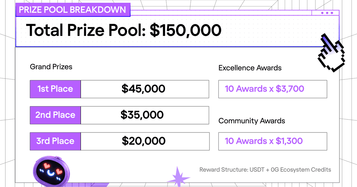 0G has opened registration for its APAC Hackathon in partnership with HackQuest, offering a $150,000 prize pool. The competition focuses on building AI agents using owned infrastructure rather than rented services. **Four Competition Tracks:** - Agent frameworks & orchestration - Verifiable on-chain trading - Autonomous agent economies - Privacy-preserving AI applications Participants receive full access to 0G's decentralized stack, including Chain, Compute, Storage, and Data Availability layers. The hackathon features in-person Open Days across the Asia-Pacific region, with winning teams presenting at the Hong Kong Web3 Festival. This follows a previous hackathon where Ajently won by creating a unified AI agent marketplace built on 0G's infrastructure in just four days.