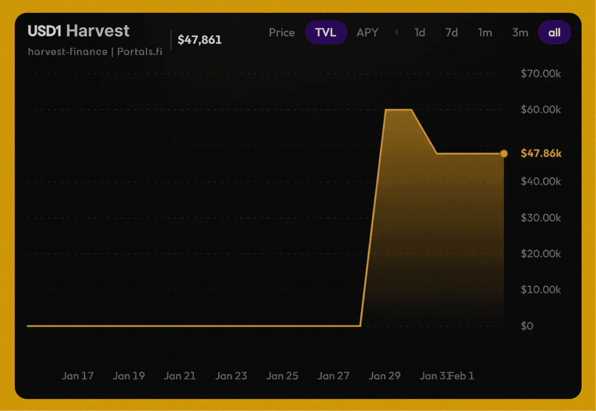 Harvest's USD1 Autocompounder has reached the #1 position on DefiLlama for the asset, establishing itself as the leading automation tool in the World Liberty Financial ecosystem. **Key Features:** - One-click automated $WLFI claiming - Optimized performance alongside USD1 Points exposure - Powered by [Dolomite](https://dolomite.io) The autocompounder launched in late January as the industry's first USD1 automation solution for World Liberty Financial. Users are now discovering the tool, which simplifies yield optimization through automated claiming processes. The platform eliminates manual claiming steps while maintaining exposure to USD1 Points, streamlining the user experience for WLFI participants.