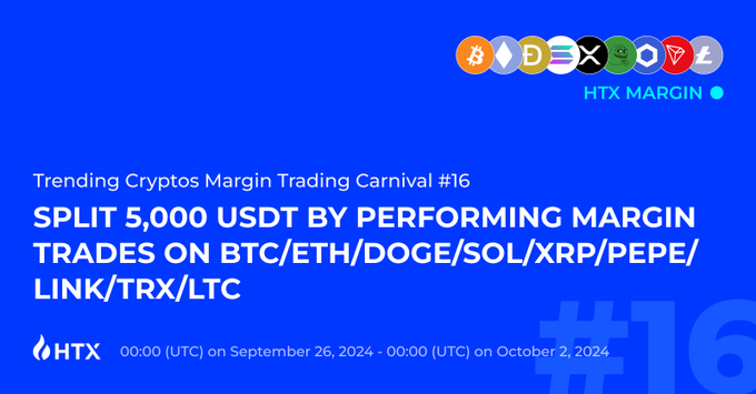 🔥HTX Margin Trading Carnival Launched! 🎉 Win your share of 5,000 USDT by margin trading your favorite cryptos: BTC, $ETH, DOGE, SOL, $XRP, PEPE, LINK, TRX, & LTC! Join:htx.com.gt/support/349819…