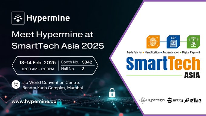 Hypermine will exhibit their digital identity, security, and verification technology solutions at SmartTech Asia 2025. The event takes place February 13-14 at the Jio World Convention Centre in Mumbai's BKC district.