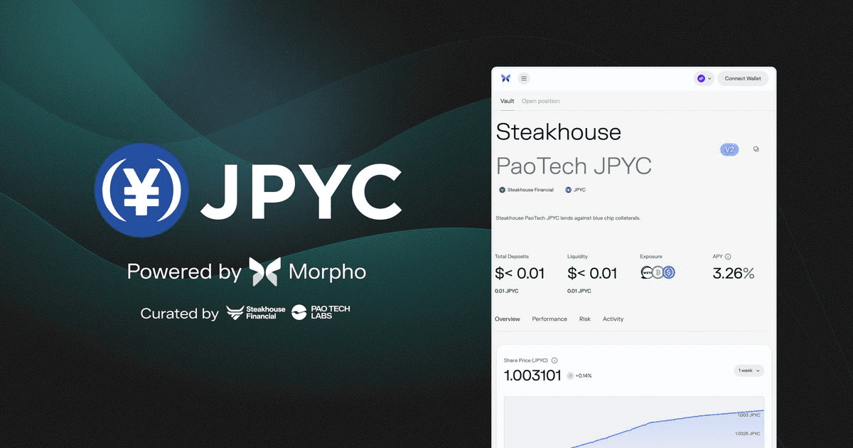 **JPYC lending markets are now operational on Morpho**, marking a significant expansion for Japanese yen-pegged stablecoin lending in DeFi. **Key Details:** - Partnership between Morpho, Steakhouse Financial, and PAOTECH Labs - Exclusively available on Polygon network - Enables users to lend and borrow JPYC tokens This launch expands Morpho's lending infrastructure following their previous integration with Coinbase DeFi lending in October 2025. The Polygon deployment offers users access to yen-denominated lending markets with the network's lower transaction costs.