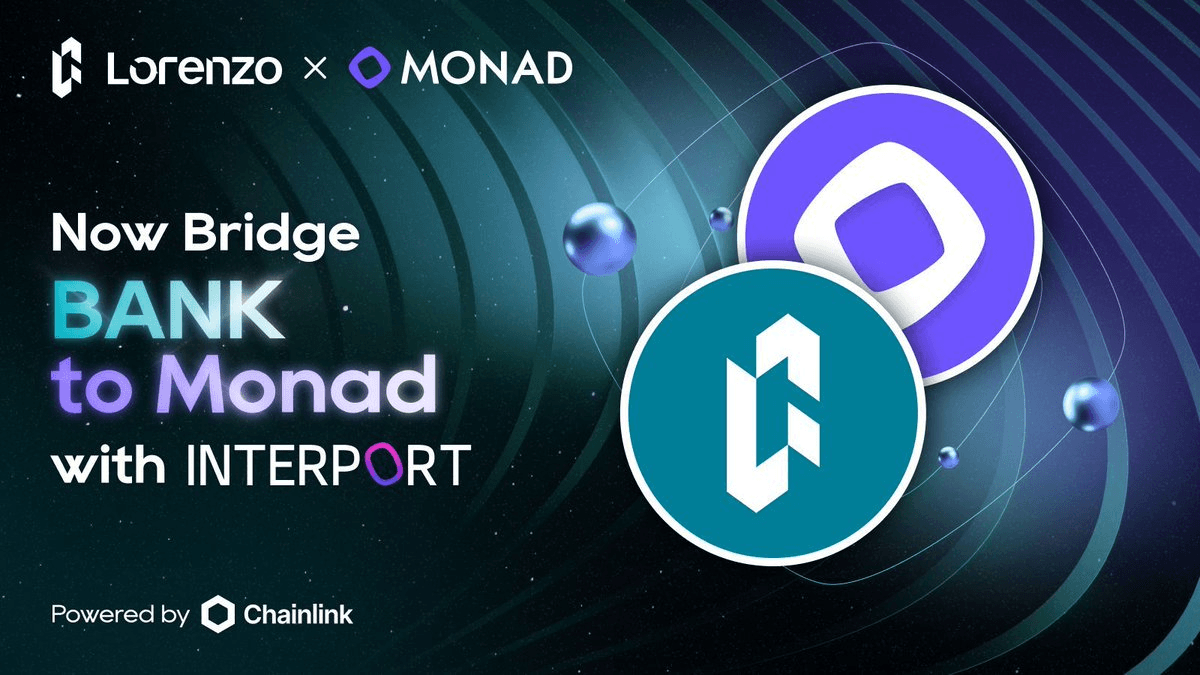 Lorenzo Protocol has launched a new cross-chain route for its BANK token to Monad, expanding its BTCFi yield ecosystem. **Key Details:** - BANK token now accessible on Monad blockchain - Cross-chain transfers secured by Chainlink's CCIP protocol - Bridge available at [app.interport.fi/bridge](https://app.interport.fi/bridge) - BANK serves as the core asset in Lorenzo's Bitcoin DeFi yield strategies This expansion builds on BANK's existing presence across Ethereum and BNB Chain, further extending the token's multi-chain accessibility for DeFi users.