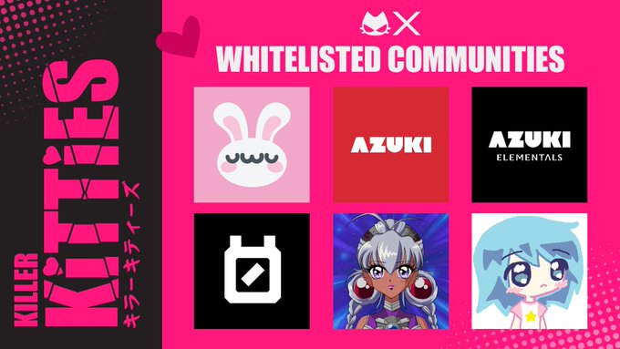 🐱 ⚔️ Killer Kitties Whitelisted Communities ⚔️ 🐱 @0n1Force, @kemonokaki, @uwucrewnft, @GalverseAnime, @Azuki You’re all cleared for the Killer Kitties mint! Mark your calendars: November 21 on @OpenSea!