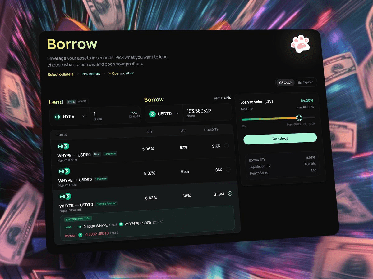 HypurrFi Integrates Pooled Markets into Quick Borrow Interface