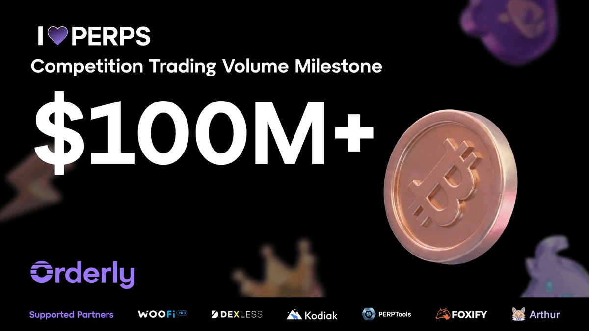 The **I ๐ Perps competition** on Orderly Network has surpassed **$100M in trading volume**, marking significant growth from $20M just a week ago. **Key Details:** - Prize pool continues to scale with each trade executed - Competition deadline: **April 21st** - Traders can still register and participate The rapid volume increase demonstrates strong trader engagement in the competition. Participants have limited time remaining to compete for prizes. [Register for the competition](https://app.orderly.network/campaigns/perps-competition)
