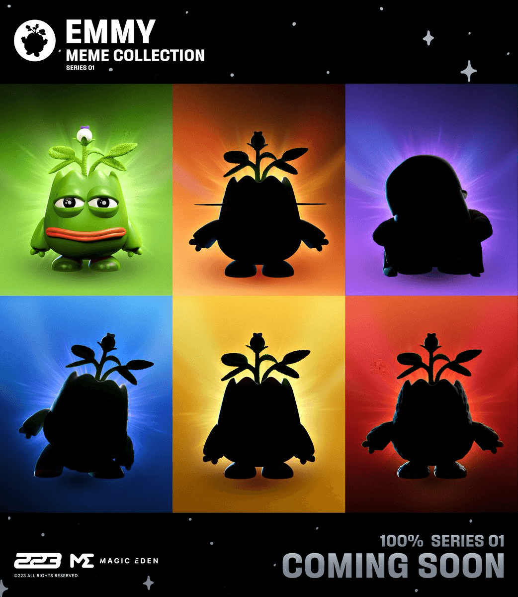 Magic Eden's Emmy mascot is getting a physical merchandise line through a partnership with 223 World, the team behind collectibles for Marvel, Disney, and Coca-Cola. **What's Coming:** - Physical blind box collectibles featuring Emmy characters - NFC-powered technology integration - Connected to Magic Eden's ecosystem - First reveal: EM PEPE character design - Additional characters remain under wraps The blind boxes represent a bridge between digital NFT culture and physical collectibles, leveraging 223 World's experience with major entertainment brands to bring Emmy into the real world.