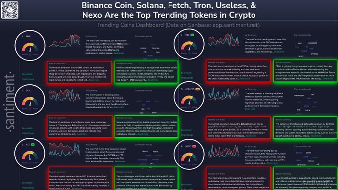 🗣️ The top trending tokens in crypto, according to social volume, are: 🪙 Binance Coin $BNB: Trending due to extensive discussions about Binance Coin (BNB) across Reddit, Telegram, and Twitter. On Reddit, conversations focus on BNB's price performance, market manipulation