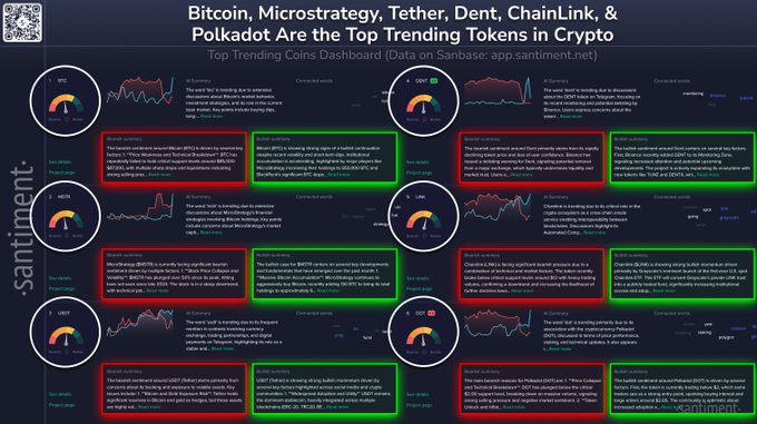 🗣️ According to our data, top trending tokens driving markets and circulating across social media are: 🪙 Bitcoin $BTC: Trending due to extensive discussions about Bitcoin's price cycles, investment strategies, and market predictions on Reddit, frequent mentions in flash