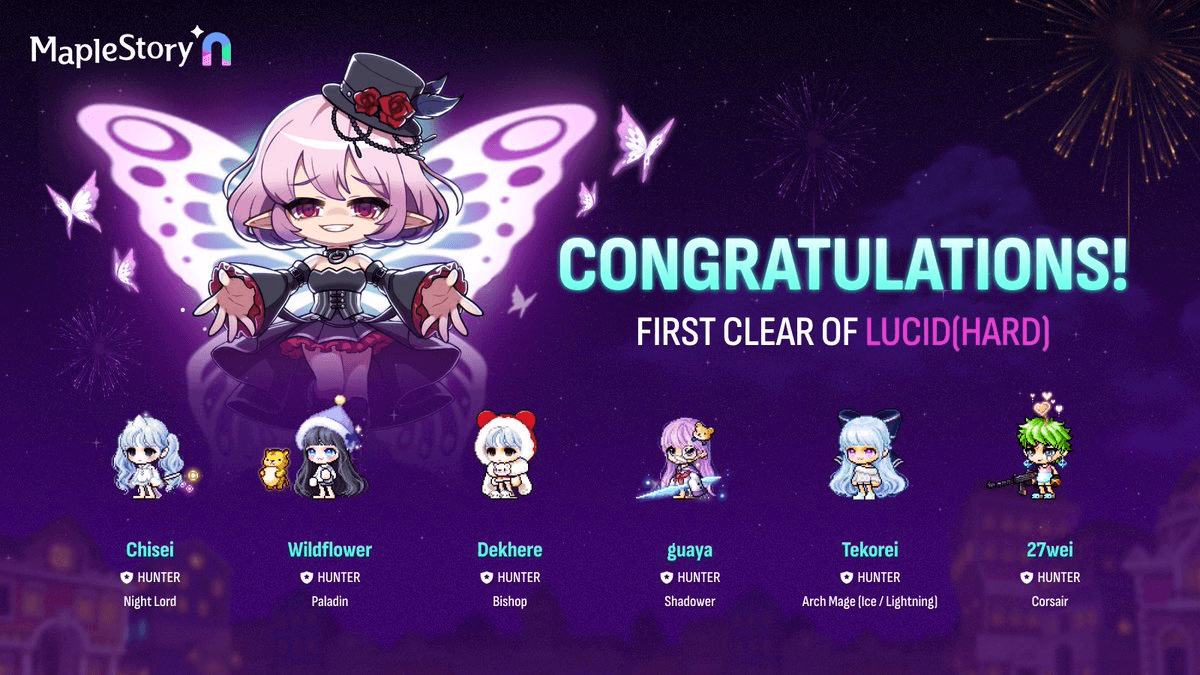 **Historic Achievement in MapleStory N** A party has achieved the first-ever Hard Lucid clear in MapleStory N, marking a significant milestone in the game's challenging endgame content. **Key Points:** - First team to defeat Hard Lucid boss - Described as a nightmare difficulty encounter - Community celebration of the legendary accomplishment This achievement represents countless hours of preparation, coordination, and skill from the victorious party.