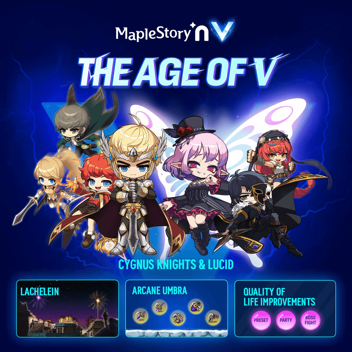 MapleStory's **Age of V finale** has arrived, bringing significant updates to the game: - **Cygnus Knights** have been completed and reborn with enhanced abilities - Players can now face **Lucid** and enter the dream world of **Lachelein** - The nightmare-themed content marks the conclusion of the Age of V storyline The update is available now for players to experience. [Play the Age of V finale](https://msu.io/maplestoryn/event/20251218-intro?lang=en)