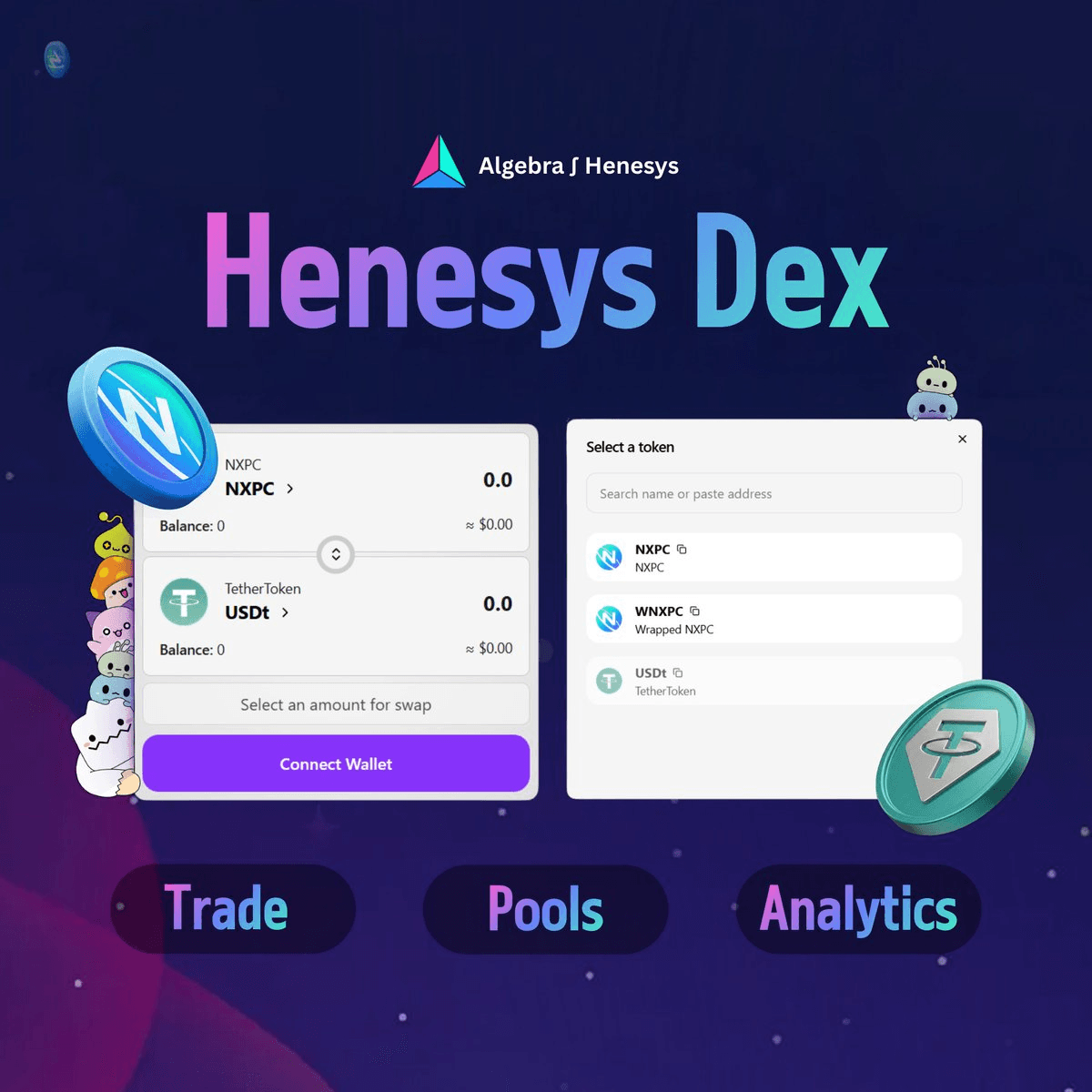 Henesys has launched a decentralized exchange powered by Crypto Algebra, enabling direct trading between native NXPC tokens and USDT on its Layer 1 blockchain. **Key Features:** - Fully on-chain settlement without requiring bridges - Bridged USDT available for user convenience - Optimized liquidity architecture designed for stable trade execution - Native token pair trading (NXPC/USDT) The platform warns users that DEX transactions may result in impermanent loss based on token pair supply and demand dynamics. Trading is now live at [Henesys DEX](https://henesys.algebra.finance/swap).