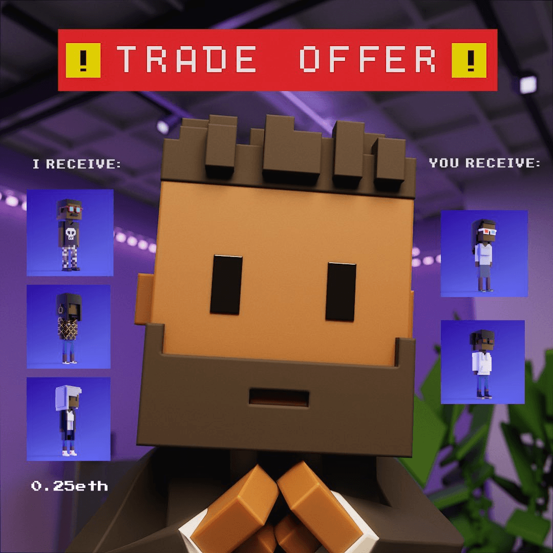 **MeebCo completed another upcycling trade** with an OG holder on December 13th. **Trade Details:** - Received: Meebits #30, #982, #1797 + 0.25 ETH - Exchanged: Meebits #205 and #8615 **Treasury Update:** MeebCo now holds **877 Meebits** in total inventory. This continues the company's strategy of facilitating trades for community members while building their collection of the 3D NFT characters.