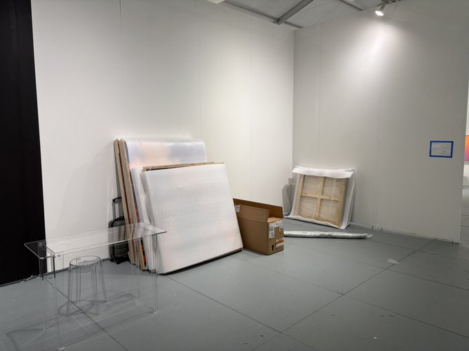 The team has arrived in Miami and is preparing their booth for SCOPE - a major art fair event.