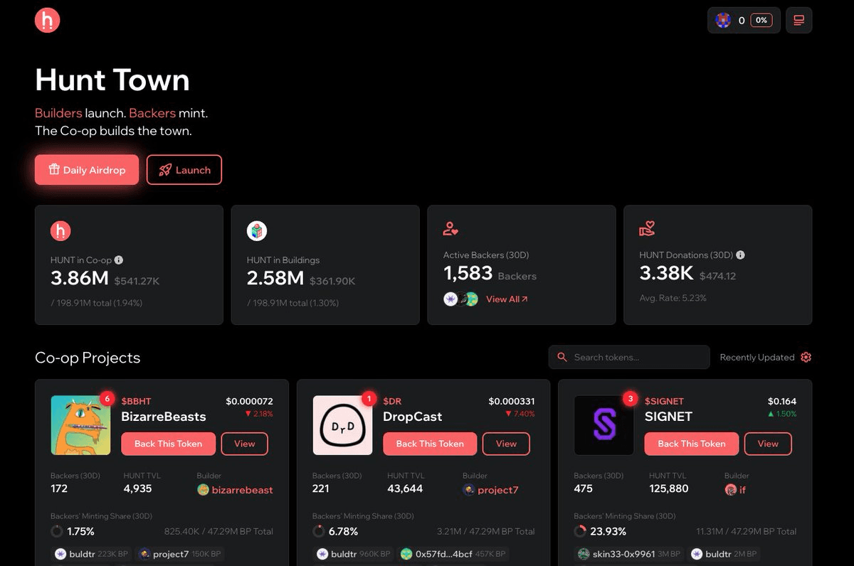 **Hunt Town Co-op officially launches** using Mint Club protocol on Base network. **Key Features:** - Community-driven builder network model - Backed by 4,000+ NFT holders - $HUNT-backed tokens for ecosystem expansion - Integration with Mint Club's bonding curve technology **The Vision:** Hunt Town aims to strengthen its ecosystem through collaborative building. The co-op connects builders, community members, and backers to create mini-apps, websites, and products. **Community-First Approach:** The project emphasizes that success requires collective effort from the entire community rather than individual initiatives. Explore the platform at [hunt.town](http://hunt.town)