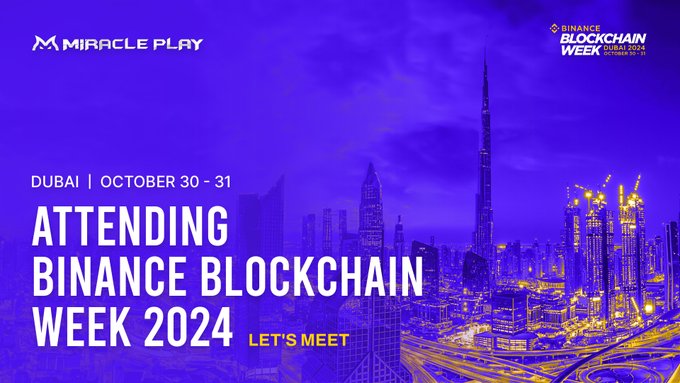 馃殌 Exciting news! #MiraclePlay is joining #BinanceBlockchainWeek in Dubai on October 30-31! 馃實 We look forward to engaging with blockchain thought leaders, advancing discussions on Web3 gaming, and presenting Miracle Play鈥檚 strategic vision for the future of #Esports. Join us