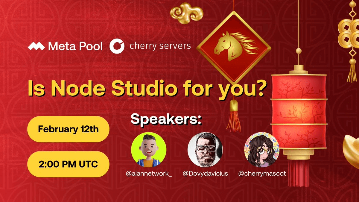 **Node Studio Cohort #3** is now accepting applications for builders interested in validator careers. **Program Details:** - Information session scheduled for February 12 - Hosted by representatives from Cherry Servers - Focuses on validator operations and blockchain ecosystem development **What Node Studio Offers:** - Structured path to becoming a validator on NEAR - Technical training and ecosystem integration - Support for building validator infrastructure The program follows two previous cohorts, with Cohort 2 featuring speakers from Meta Pool and NEAR Protocol. Node Studio aims to simplify the validator onboarding process for builders looking to participate in network validation. Interested participants can join the February 12 session to learn more about the program structure and requirements.