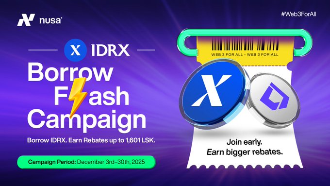 NUSA Finance has launched its IDRX Borrow Flash Campaign, offering users a chance to earn from a 1,601 LSK rebate pool while borrowing the IDRX stablecoin.