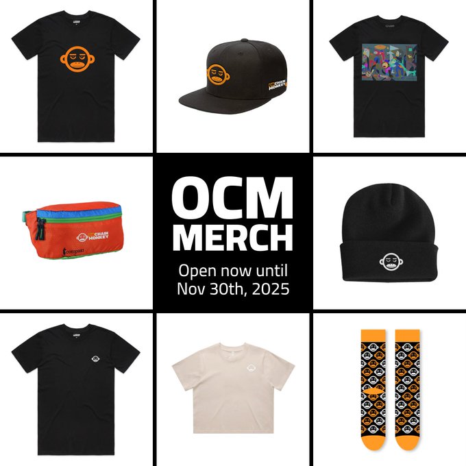 The OnChain Monkeys (OCM) merch store is now open for pre-orders through November 30th.