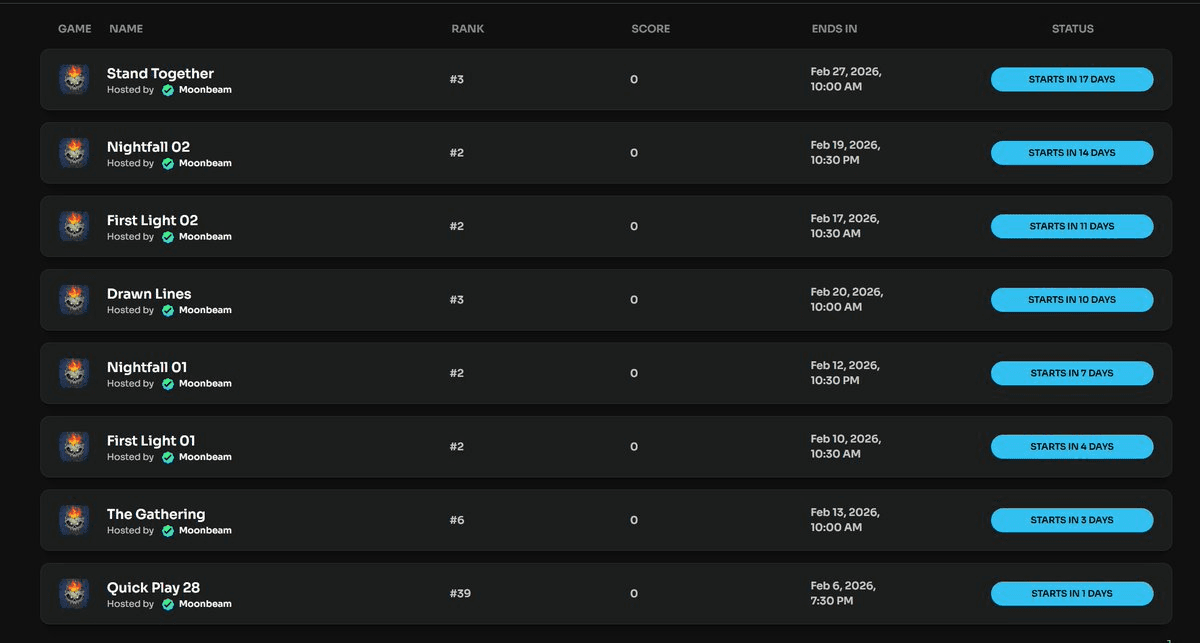 Olderfall announces two new tournaments on the Moonbeam Network: **Rising Banners Tournament** - Prize pool: $500 - Theme: "Stand together or stand alone" - [Tournament details](https://n3mus.com/tournaments/rising-banner) **Quick Play #26** - Prize pool: $250 - [Tournament link](https://n3mus.com/tournaments/quick-play-26) Both tournaments continue the game's gladiatorial combat format, where players manage teams of warriors in auto-battler style gameplay. The Rising Banners event follows the previous Sworn Allegiance tournament, maintaining the strategic team-based competition structure.