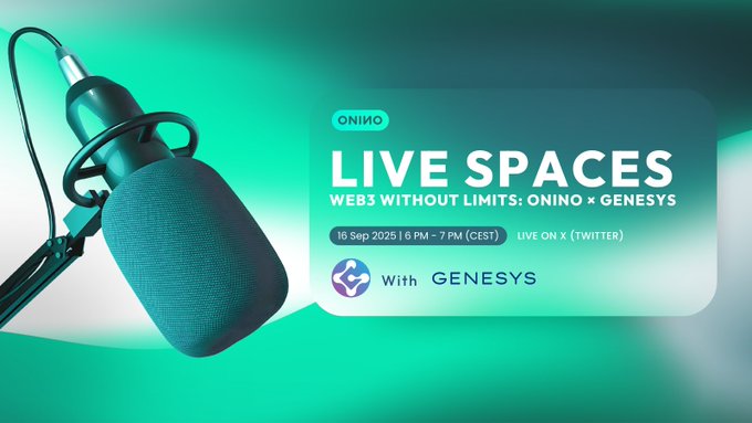 🚨 AMA Incoming! We’re going live with @GenesysChain this Tuesday, Sept 16 at 6 PM CEST, right here on our X. From tokenization infrastructure to DeFi innovation and the next wave of Web3 growth, we’ll dive deep into how ONINO and Genesys are working together to power the