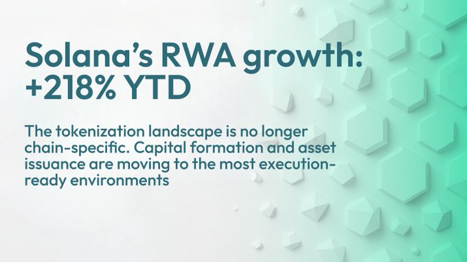 Solana’s RWA market has grown 218% year-to-date. It is more than double Ethereum’s 81% growth over the same period. While Ethereum still leads in total RWA value, the shift is clear: institutional-grade tokenization is no longer limited to a single network. Builders are choosing