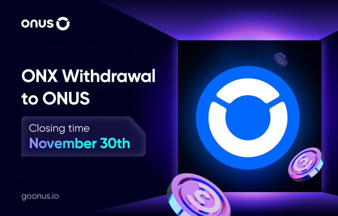 🚪 ONX Withdrawal to ONUS Closes on November 30th We will close the ONX withdrawal gateway to ONUS at 00:00 UTC on November 30, 2024. Make sure to transfer your ONX to ONUS as soon as possible by following these 3 simple steps: 1️⃣ Open the ONUS Exchange Bot:
