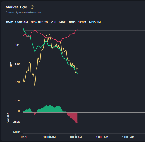 Market wide options premiums with a slightly bearish lean. Limited ask-call participation so far today, with net call premium steadily negative. unusualwhales.com/flow/overview?…
