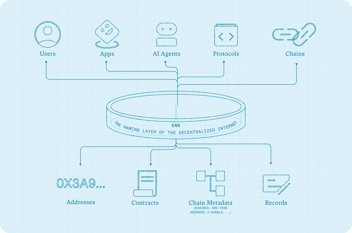 ENS is expanding beyond making wallet addresses readable. The naming system is becoming infrastructure that enables coordination across the crypto ecosystem. **Key developments:** - ENS names now serve as reference points for contracts, records, interoperable addresses, and chain metadata—not just wallet addresses - As crypto grows more complex with multiple wallets, applications, protocols, AI agents, and chains, a consistent identity layer becomes critical - Similar to how DNS allows browsers and services to resolve identity and location, ENS provides the same function onchain **Why it matters:** Different entities across networks need a shared way to identify one another and resolve data across environments. ENS is positioning itself as that coordination layer, making crypto systems more interoperable for both humans and machines. [Read more](https://ens.domains/blog/post/identity-as-infrastructure)