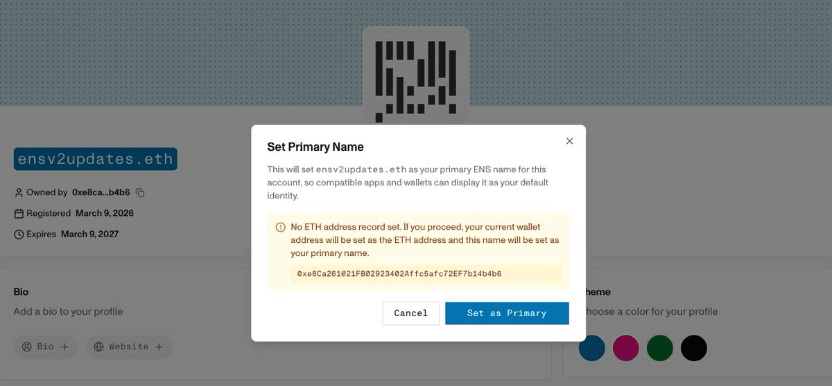 The ENS App introduced key updates to simplify name management: - **Direct L1 Primary Name Control**: Users can now set or reset their primary name directly on Layer 1, giving more control over how their .eth name appears across applications. - **Streamlined Subname Creation**: The process has been simplified with automatic address pre-population, reducing manual configuration steps. These updates build on ENS's reverse resolution system, which connects wallet addresses back to human-readable names like yourname.eth, making them visible across compatible apps and L2 networks.