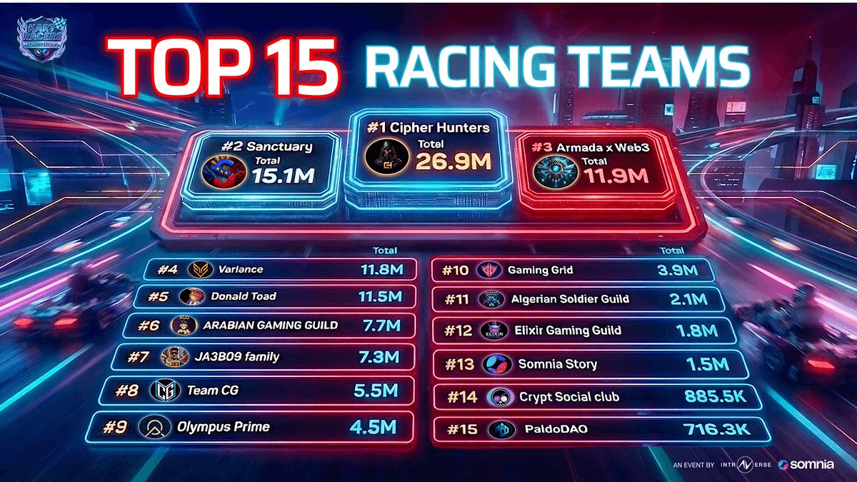 The Intraverse Main Race has concluded with 15 guilds securing prize positions. **CHGuild** leads the winners, followed by **Sanctuary Den**, **ArmadaxWeb3**, and 12 other guilds. **Key Details:** - Prize distribution scheduled within 2 weeks - Hyperdrive Season continues until February 15th - Players can participate in daily grinds and weekly arcades at [play.intraverse.io](http://play.intraverse.io) The competition showcased cross-community gaming where NFT projects compete as in-game avatars across different blockchains and metaverses.