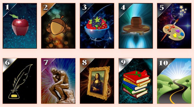 The first ten Curio Cards tell a story They were created with a specific artistic vision in mind, as a collaboration between co-founder, Mad Bitcoins, and phneep, the first Curio artist phneep also designed the numbering for the Cards, which gave the project its look and feel