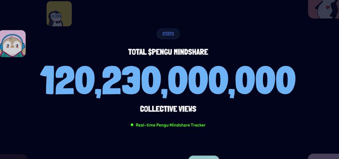 Total PENGU mindshare has crossed 120B views. 300-500M people see and share Pudgy Penguins every day.