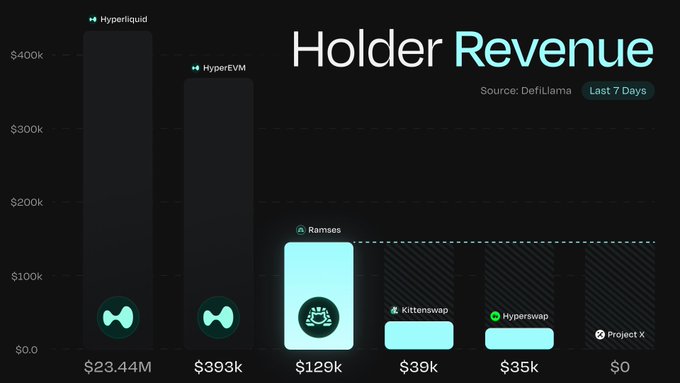 Ramses = Highest holder revenue on HyperEVM! 🐱 How? We give 100% of fees back to holders. ✅ ✅ Gauged pools = 0% protocol fee (~99% of pools) ✅ Ungauged pools = 5% (lowest in market) ❌ Competitors = 10-15% protocol fee on ALL pools Users first, always. HyperRAM.