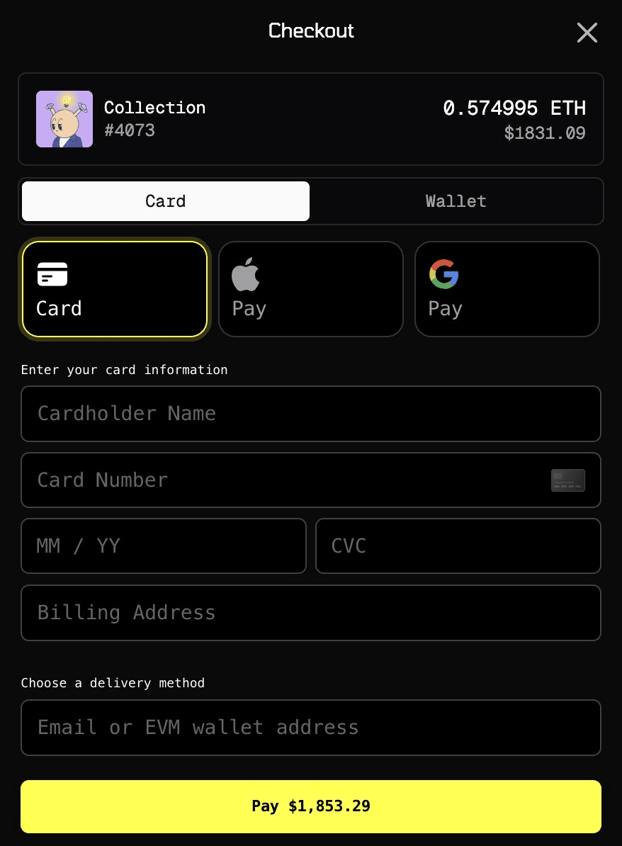 Quirkies has partnered with Rarible to simplify NFT purchases through traditional payment methods. **Key Features:** - Direct purchases using credit cards, Apple Pay, and Google Pay - Instant delivery to MetaMask wallets - No crypto acquisition required **Why It Matters:** The partnership addresses a major barrier to NFT adoption - the complexity of obtaining cryptocurrency. By enabling fiat payments, Quirkies aims to bridge web2 and web3 audiences. Two community members successfully tested the system, with NFTs arriving instantly in their wallets after payment. Quirkies credits the VeeFriends team for facilitating the Rarible connection.