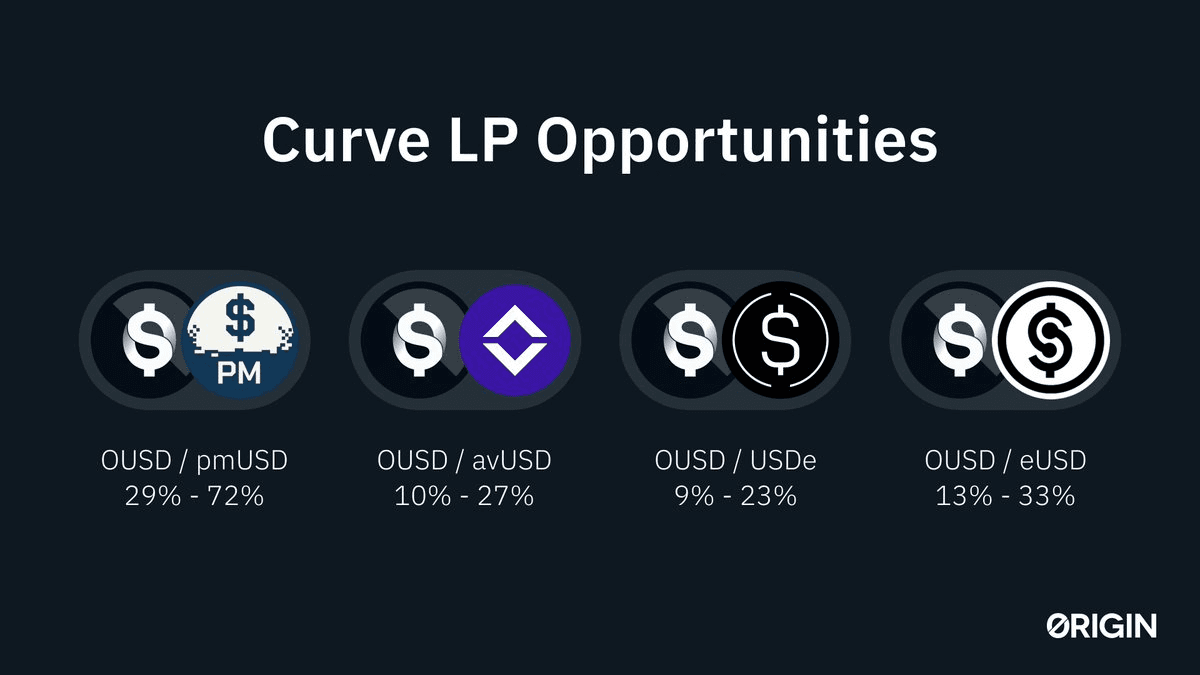 **Tangent's upcoming stablecoin $USG will integrate OUSD Curve pools as a yield source at launch.** This integration follows a broader trend of protocols pairing their stablecoins with OUSD on Curve Finance. Recent additions include: - **eUSD** from Reserve Protocol - **AVUSD** from Avant Protocol - **pmUSD** from Raac - **USDe** from Ethena (with 30x points multiplier) - **crvUSD** from Curve - **msUSD** from Metronome DAO These partnerships leverage Pool Booster, which routes OUSD yield to pool incentives, creating double-digit APYs for liquidity providers. The USDe/OUSD pool combines co-incentives with Pool Booster rewards, while the pmUSD/OUSD pool offers a 4x points multiplier. LPs on various OUSD pools are currently earning between 7.48% to 26.6% APY. The strategy strengthens onchain liquidity, improves LP incentives, and creates more resilient stablecoin pegs across the ecosystem. Explore OUSD pools: [Curve Finance](https://www.curve.finance/dex/ethereum/pools?search=OUSD)