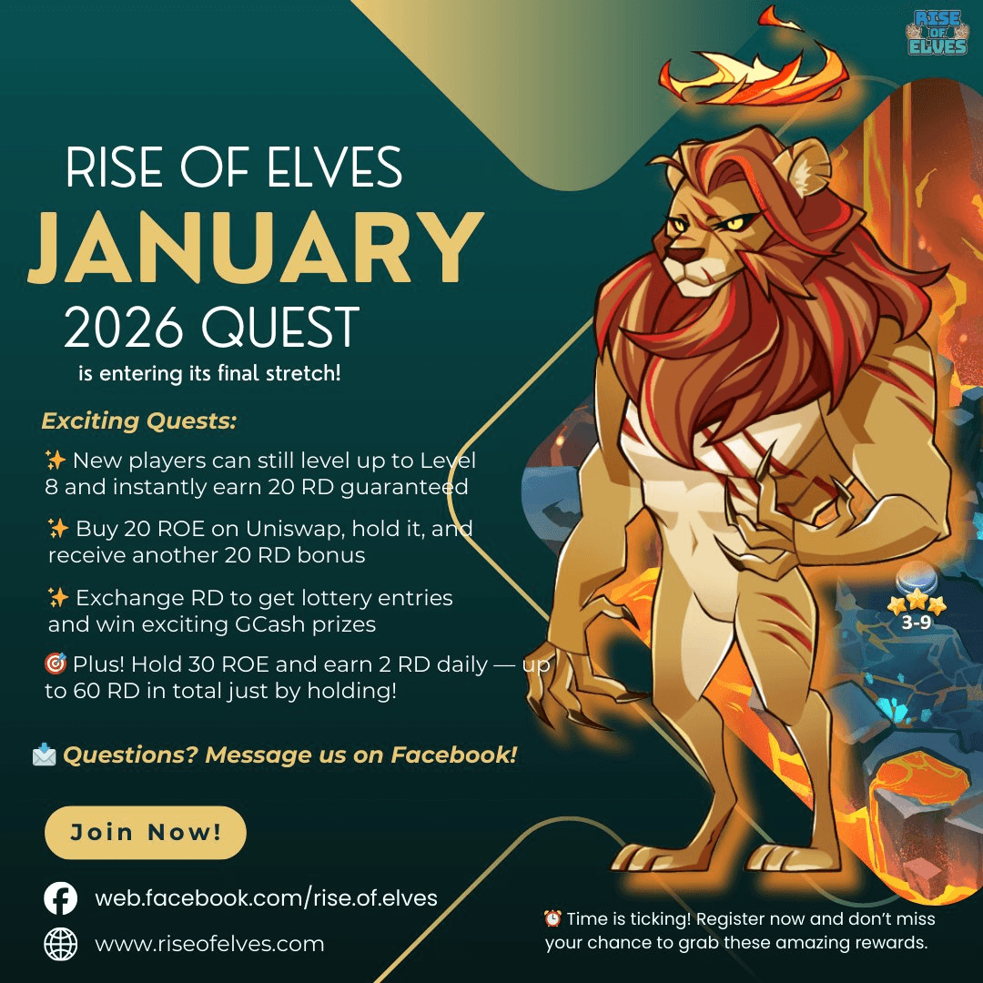 **Rise of Elves** has launched its **December Holiday Quest**, running from December 1-28, 2025. The Christmas-themed event features: - **Festive challenges** designed for holiday gameplay - **Generous rewards** to help players boost progress before year-end - Multiple events including level-up rewards and ROE purchase bonuses Players can register through the official Facebook page to participate in the holiday celebration. The quest builds on Rise of Elves' ongoing monthly event series, which has consistently offered rewards like RD tokens, GCash prizes, and daily earning opportunities for both new and existing players throughout 2025.