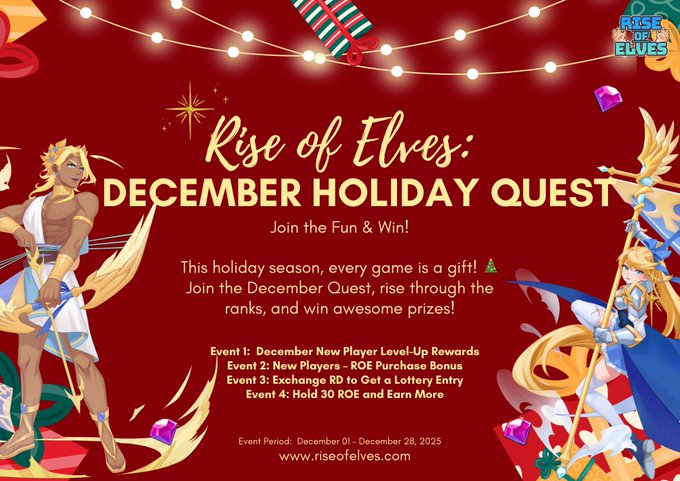 Rise of Elves: December Holiday Quest โ Join the Fun & Win! This holiday season, every game is a gift! ๐ Join the December Quest, rise through the ranks, and win awesome prizes! Event Period: December 01 โ December 28, 2025