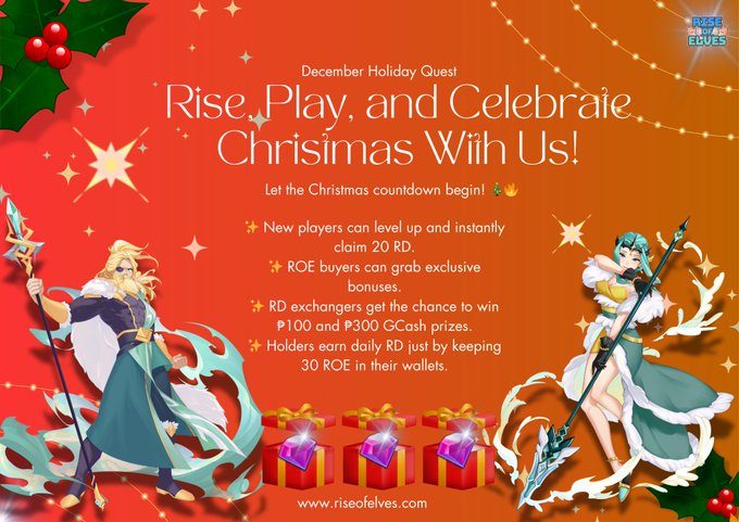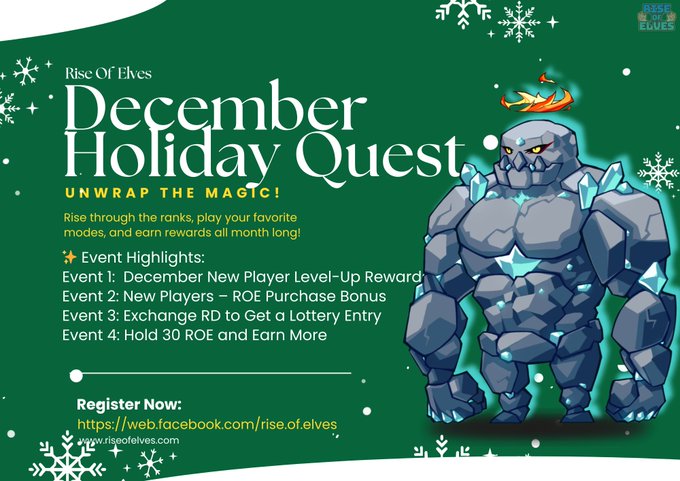 Rise, Play, and Celebrate Christmas With Us! Let the Christmas countdown begin! The December Holiday Quest is filled with festive challenges and generous rewards perfect for players looking to boost their progress before the year ends. โก๏ธRegister Now: web.facebook.com/rise.of.elves