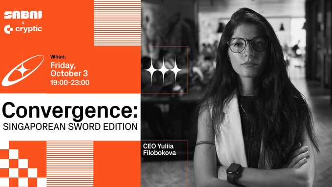 🎙 Sabai Protocol will be present at a side event after @token2049 , organized by @Cryptic_Web3 Our CEO Yuliia Filobokova will participate in the panel – “The Link Between L1 Blockchains and RWA Tokenization”. 📌 When: Today, 19:00-23:00 SGT (Singapore Time) 🎟 Register: