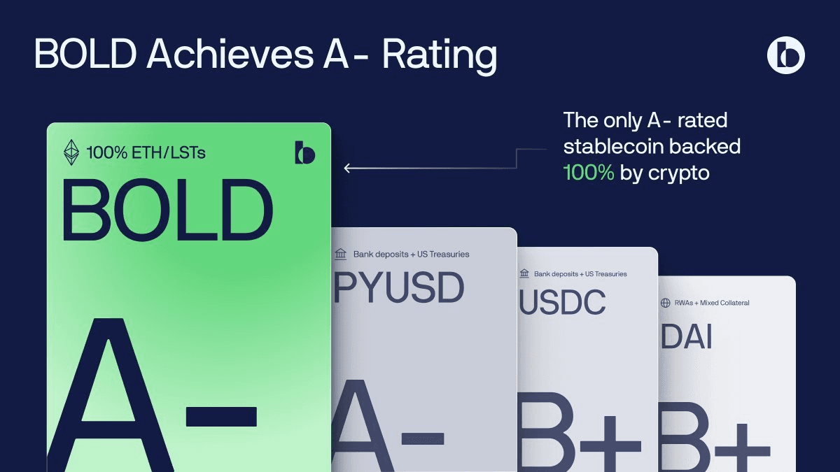 BOLD Stablecoin Achieves A- Rating from Bluechip, Outranking USDC and DAI