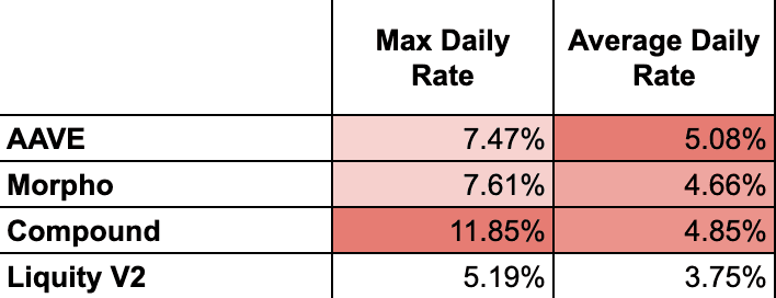 **Major lending platforms move in lockstep** - when Aave spikes, Morpho follows. But Liquity V2 offers a different path. **Key differentiators:** - Average ETH borrow rate: 3.75% - Rate ceiling: Never exceeded 6% - Near-zero correlation with major lending markets - Maintained stability through market crashes and cascades **Why it matters:** Traditional DeFi lending rates are highly correlated - when one platform experiences rate volatility, others follow. Liquity V2's independent rate structure means borrowers aren't forced to ride the herd's volatility waves. **The broader context:** Recent data shows Liquity V2 consistently offers rates 100+ basis points cheaper than competitors, with wstETH borrowing at just 1.46% - 2% below the next best option. The platform also enables fixed-rate borrowing up to 91% LTV on ETH. For treasuries and yield optimizers tired of rate unpredictability, this uncorrelated venue presents an alternative to the synchronized movements of pooled lending protocols. [Explore Liquity V2](https://liquity.app/borrow)