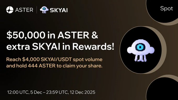 SKYAI ($SKYAI) is listing on Aster exchange with a week-long trading campaign starting December 5.